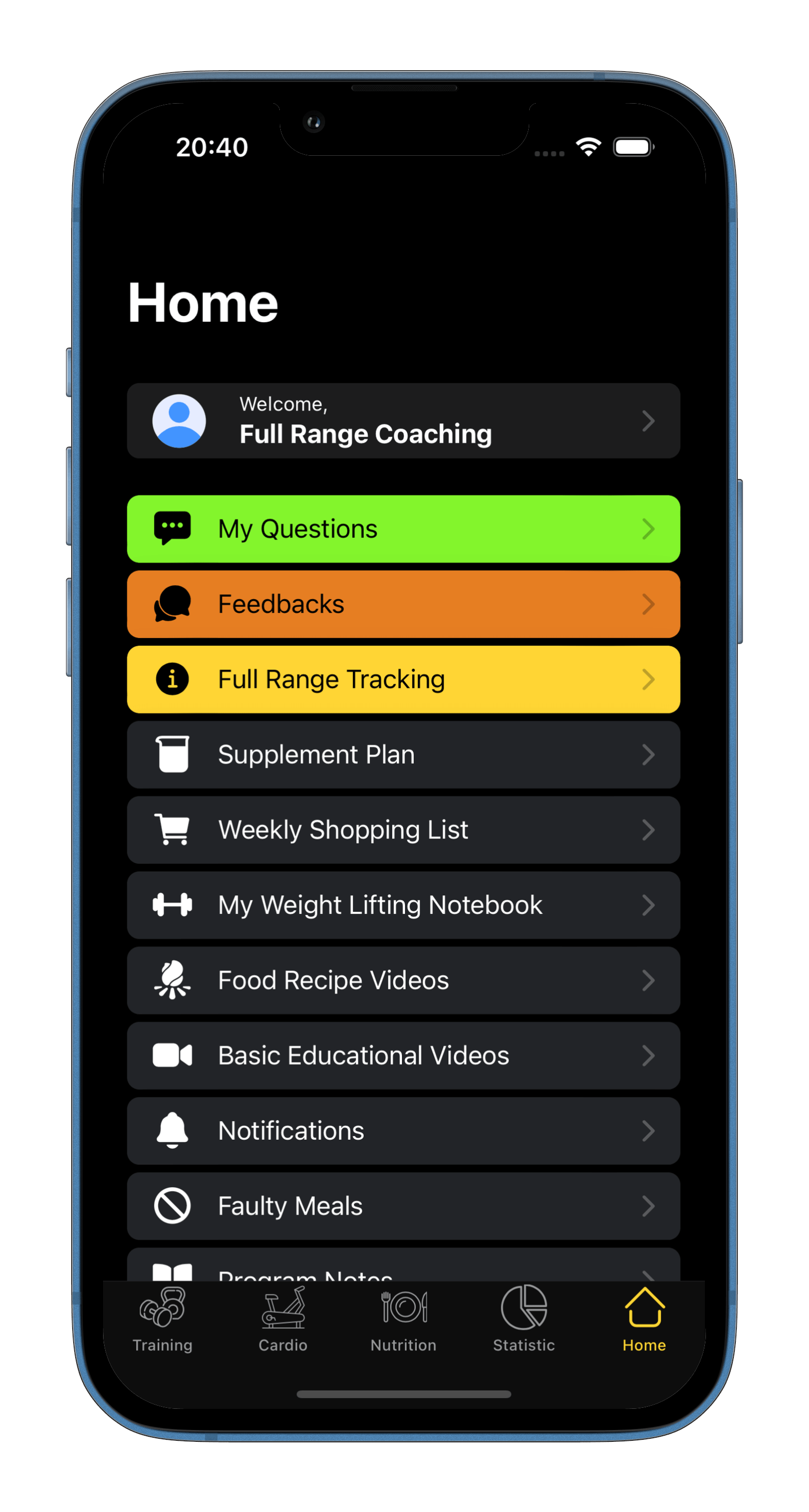 Your fully personalized Training, Nutrition, Cardio, and Supplement Program is now right in your pocket.